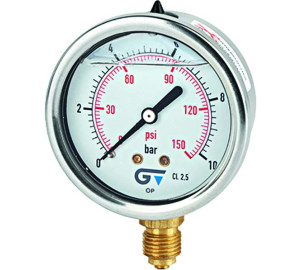 Manómetro Ø 63 con glicerina, salida inferior, r ...