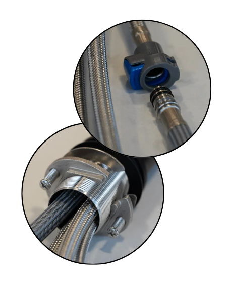 Además, están diseñados para una instalación ágil y segura, optimizando el tiempo de montaje.Incorporan un sistema de instalación rápida que ahorra tiempo y garantiza una fijación sólida: el FastConnect, con casquillo de acero inoxidable, asegura una conexión estanca del flexo; el conjunto de sujeción puede insertarse una vez instalados los flexos (en abierto) y los tornillos aportan una fuerza superior para una excelente fijación. Además, su flexo multidireccional facilita orientar el agua con total comodidad.